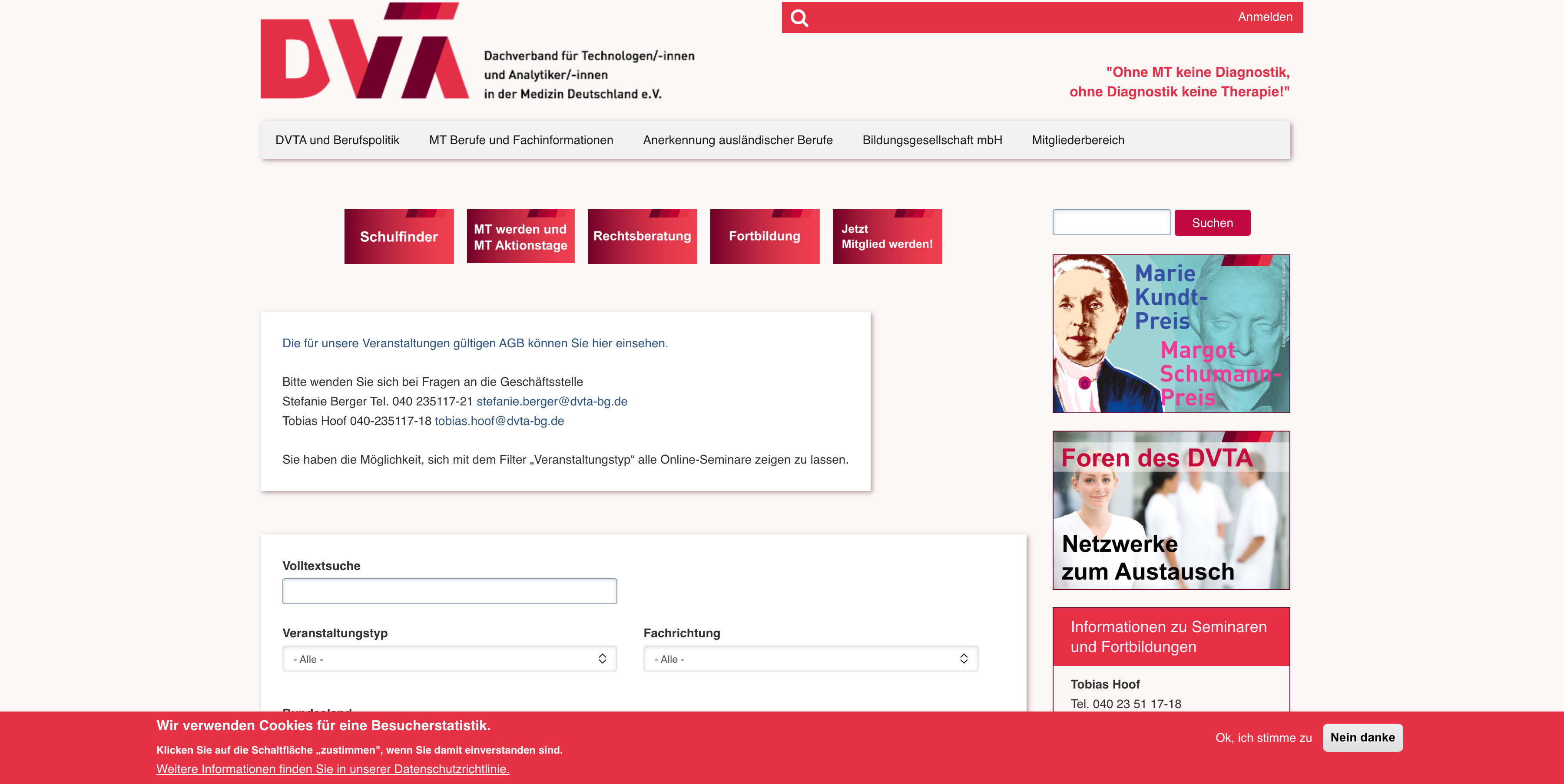 Kunde: DVTA - Dachverband für Technologen/-innen und Analytiker/-innen in der Medizin Deutschland e.V. Jahr: 2023-2024 CMS: Drupal 10 URL: https://dvta.de/