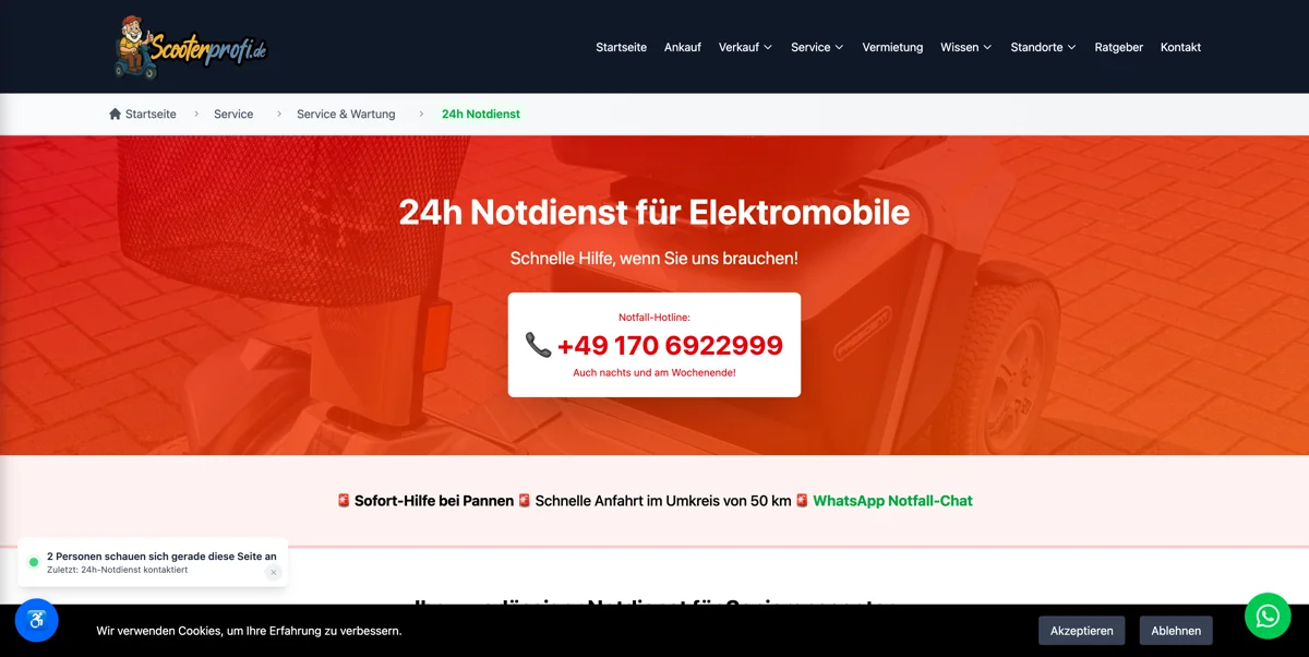 ScooterProfi.de ist eine spezialisierte E-Commerce-Plattform für den An- und Verkauf sowie die Vermietung von gebrauchten Elektromobilen und Seniorenmobilitätslösungen. Die mit Astro entwickelte Website richtet sich primär an Senioren und mobilitätseingeschränkte Personen in Norddeutschland und bietet transparente Preisgestaltung mit bis zu 50% Ersparnis gegenüber Neupreisen.