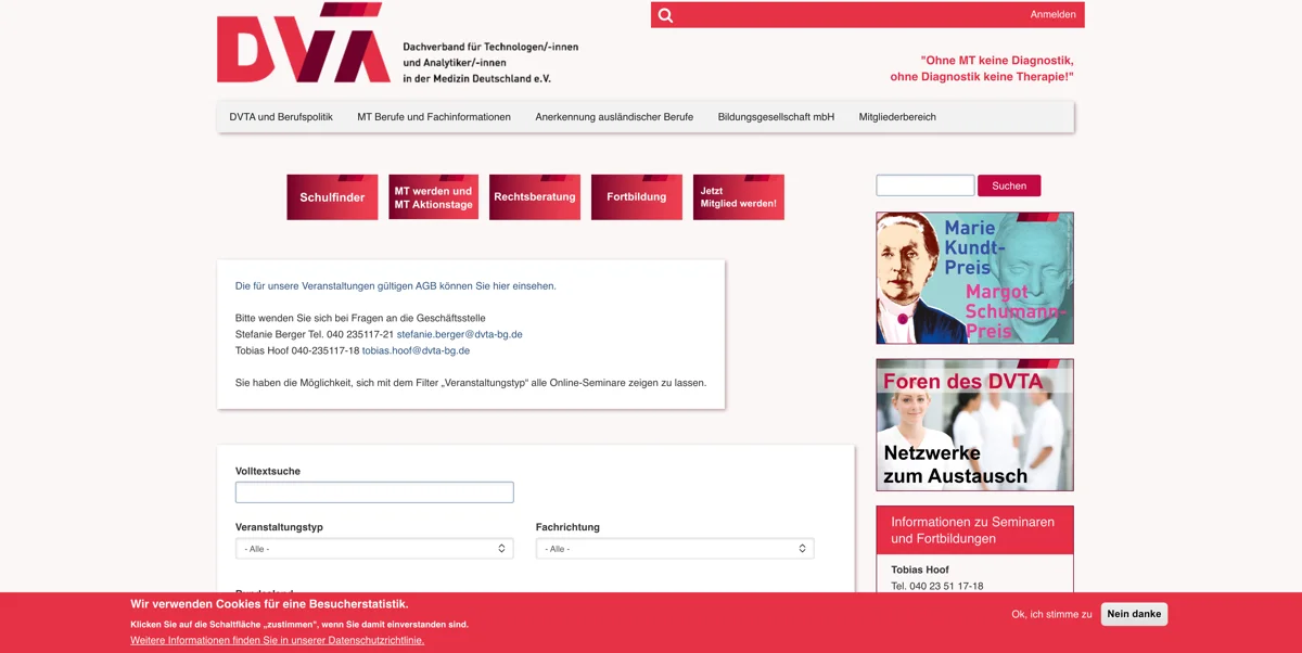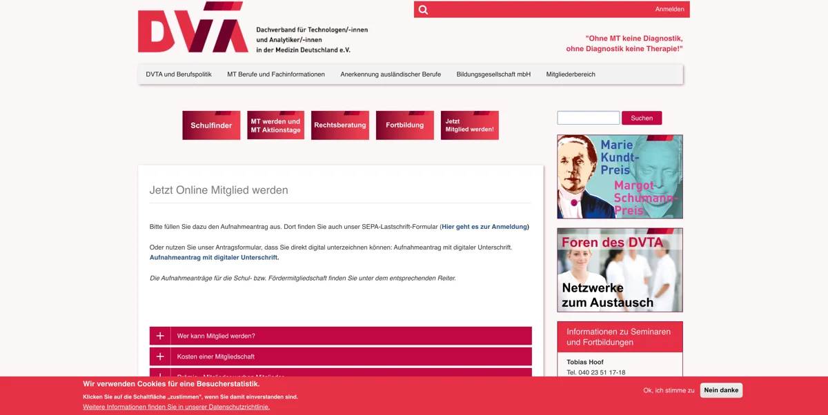 Kunde: DVTA - Dachverband für Technologen/-innen und Analytiker/-innen in der Medizin Deutschland e.V. Jahr: 2023-2024 CMS: Drupal 10 URL: https://dvta.de/