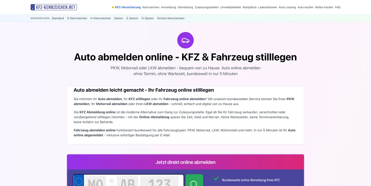 - Bundesweiter Online-Abmeldung in nur 5 Minuten