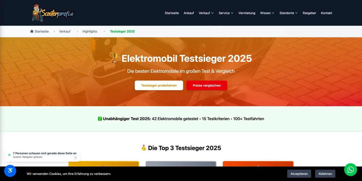 Die Plattform ermöglicht es ScooterProfi, ihre gebrauchten Elektromobile effizient online zu vermarkten und bietet Senioren eine zugängliche, vertrauenswürdige Shopping-Erfahrung.