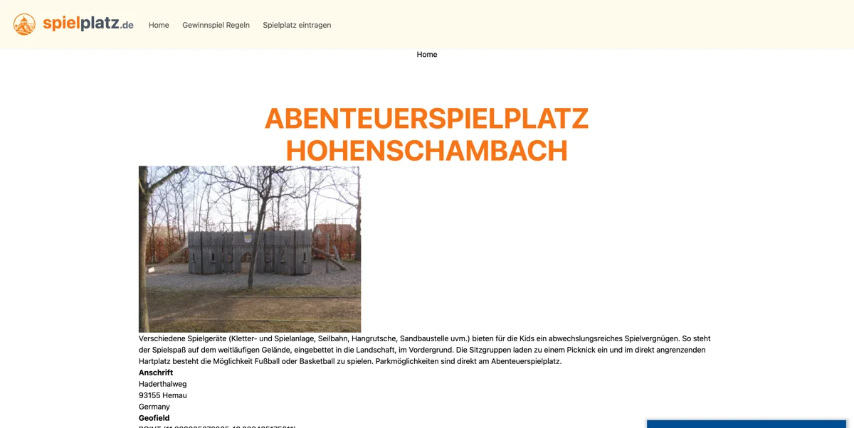 - Detailseiten: Ausführliche Informationen zu jedem Spielplatz